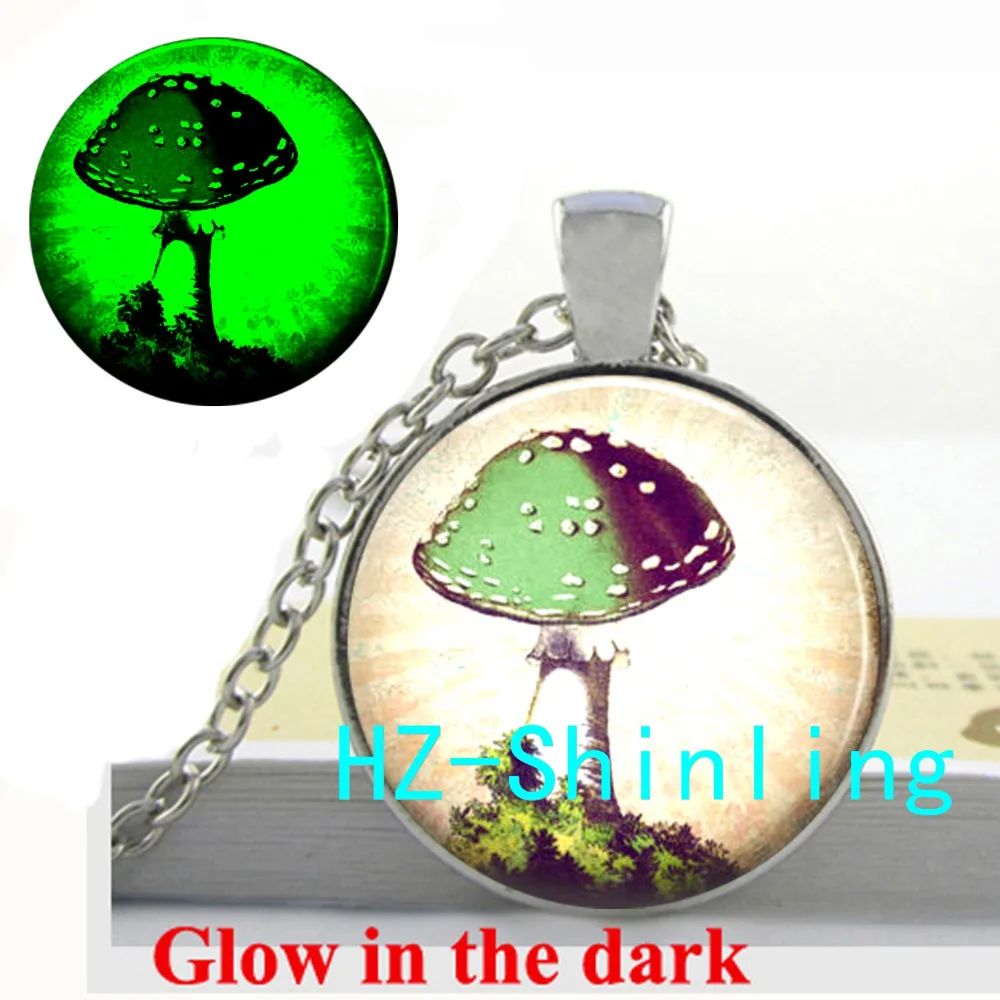 32739112797 Offer Glowing Jewelry Mushroom Pendant Necklace Mushroom Jewelry Glass Picture Pendant Glow in The Dark N
