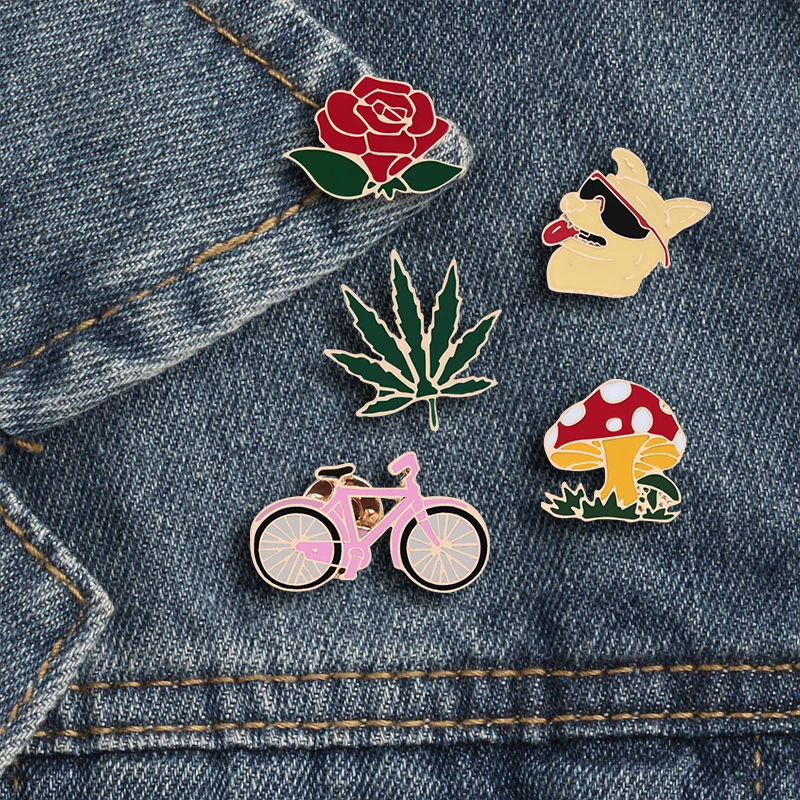 32934048996 Offer Fashionable Rose Brooches For Women Cool Dog Leaf Mushroom Bicycle Pin Men Lapel Flower Accessories