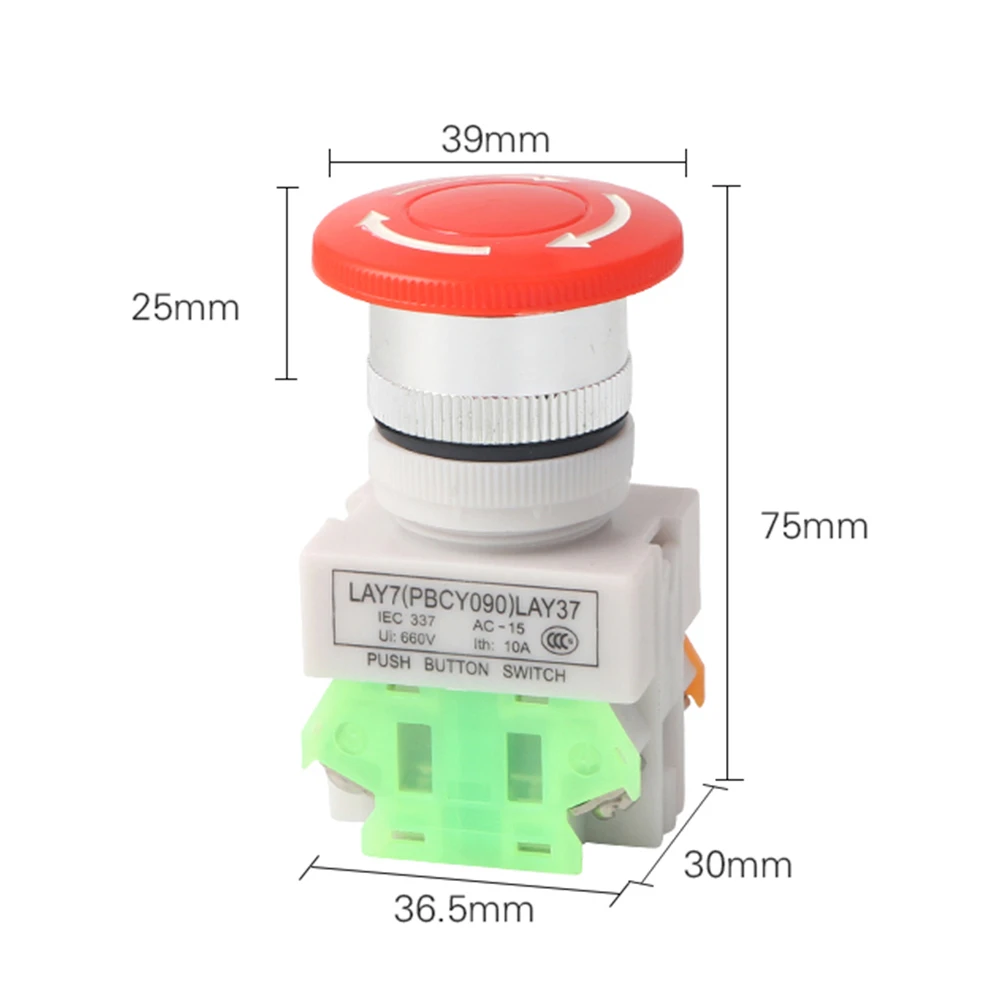 Sale Mushroom Head LAY37 Emergency Stop Push Button Switch Self-lock/Latchiing LAY7 PBC Y090-11ZS Power