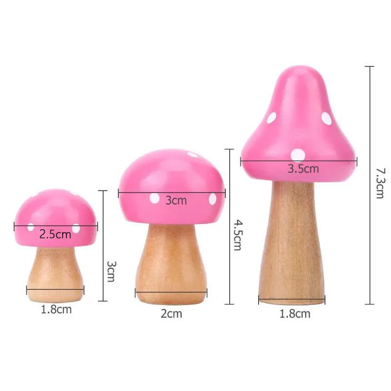 Promo 3 Pieces Mini Ornaments Miniatures DIY Crafts Desktop Decoration Home Decor Wood Mushroom Ornament