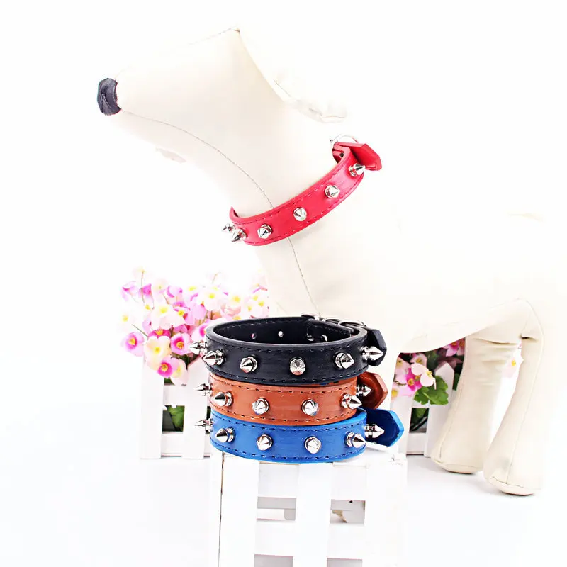 Discount Dog Neck Ring Mushroom Nail PU Pet Collar 2cm Small Dogs Collar Teddy Pomeranian Neck Ring