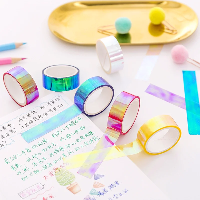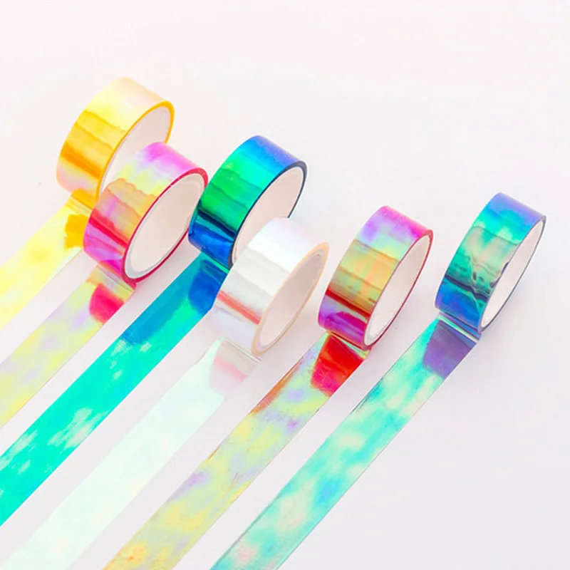 Offer 1 Pcs Creative Cool Color Tape Laser Gradient Decoration Waterproof Tape Children Collage PaperScra