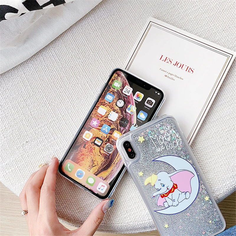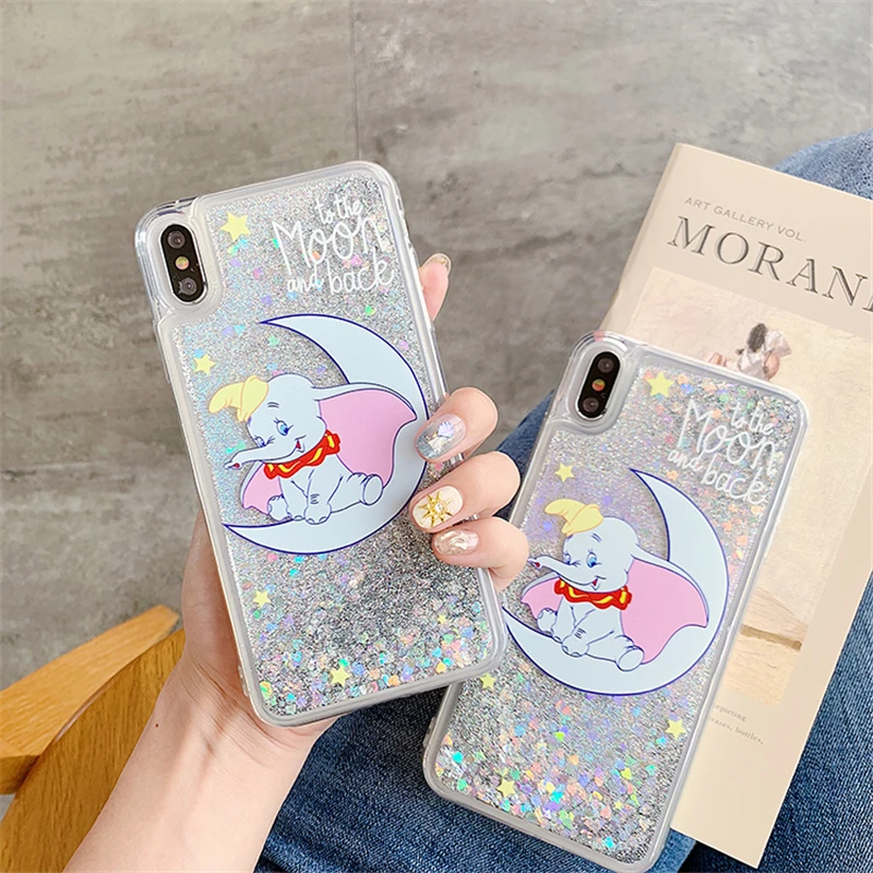 33051906217 Cheap Moon Dumbo Elephant Liquid Quicksand Case For Samsung Galaxy A50 A30 A10 M10 M20 J3 J4 J6 J8 A6 A7